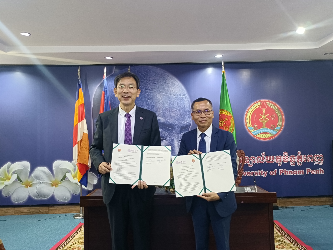 Li Luming (left) signs a Memorandum of Understanding between Tsinghua University and the Royal University of Phnom Penh.