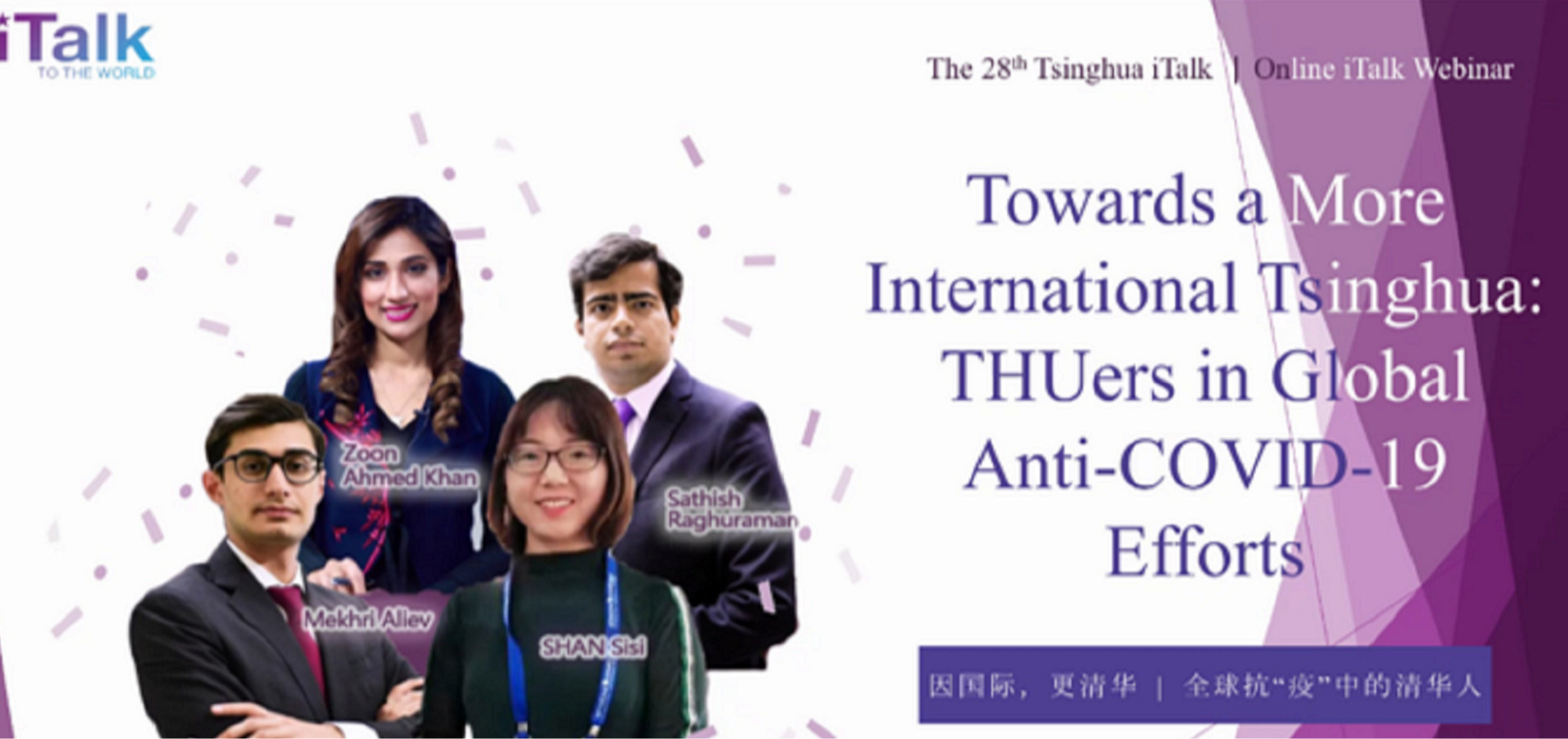 The 28th online iTalk, hosted by the Graduate Union of Tsinghua University, was recently held. With its theme“Towards a More International Tsinghua: THUers in Global Anti-COVID-19 Efforts”, the event invited four Tsinghua students and alumni from China, Pakistan, India, and Russia to share thei...