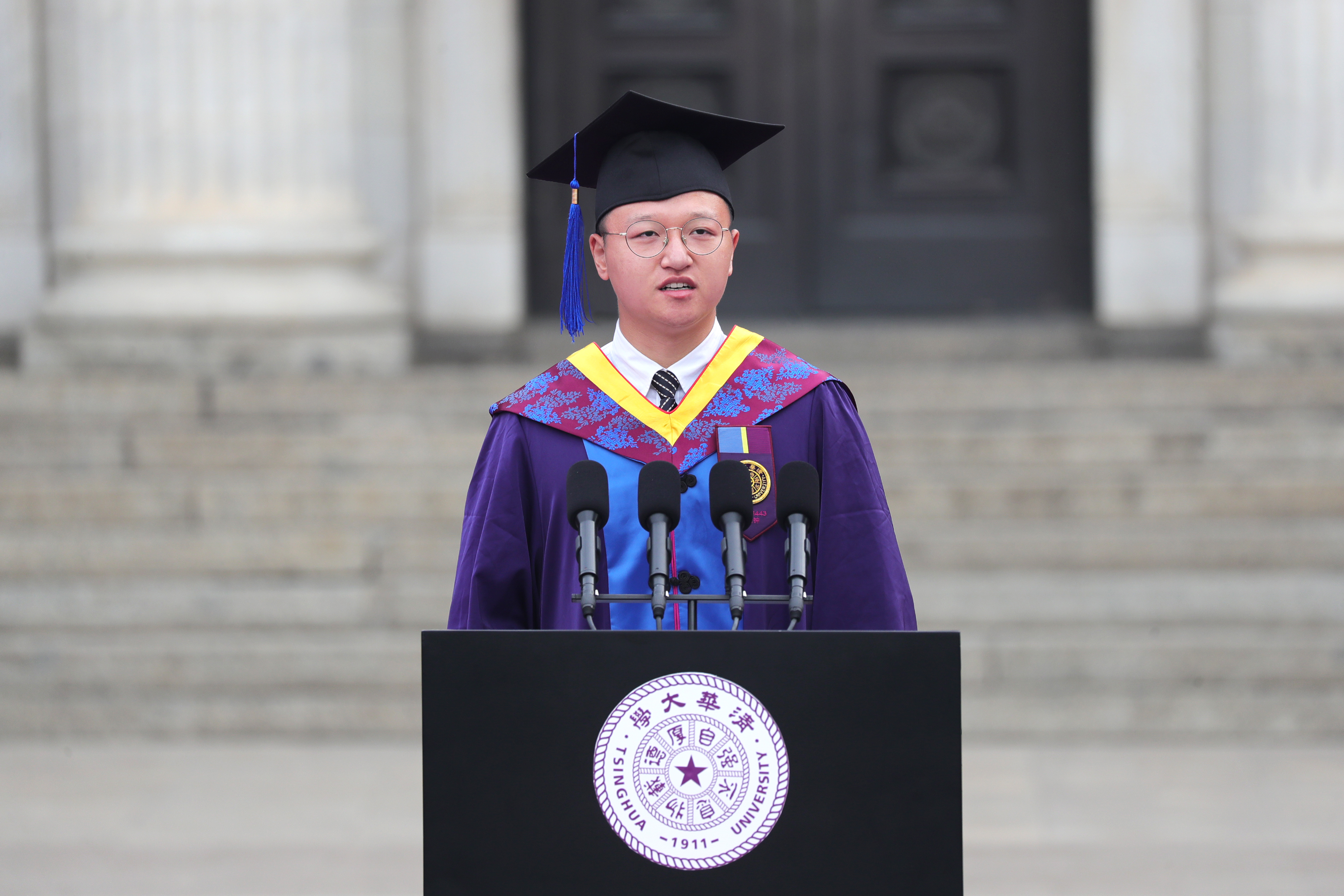 Yue Siyu, a doctoral graduate from the Department of Earth System Science, gave her commencement remarks as the doctoral student representative.
