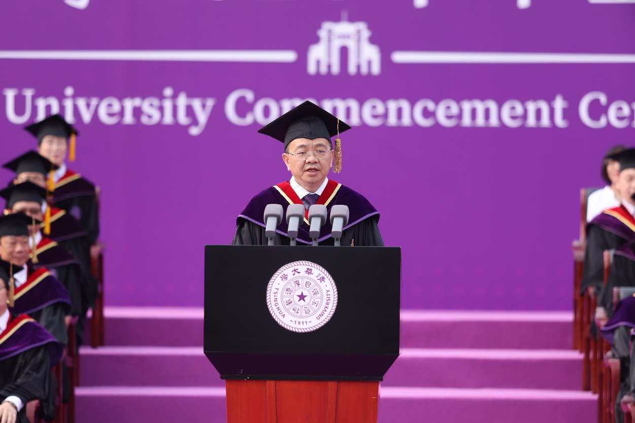 He called on everyone to remember the school motto of "Self-discipline and Social Commitment," promote the Tsinghua spirit of dedication to the country and pursuit of excellence, and integrate their personal aspirations with the great mission. He encouraged graduates to uphold the school ethos of “Actions Speak Louder Than Words”, contributing through actions to the great cause of building a strong nation and achieving national rejuvenation, thus writing an unforgettable chapter of their youth.