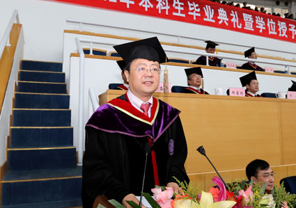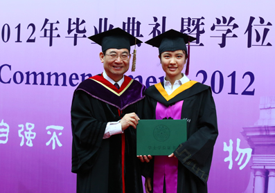 Tsinghua University Commencement 2012 for post-graduates and under-graduates were held separately in the Comprehensive Gymnasium on the mornings of July 3 and 4, 2012. More than 4,100 post-graduates and 3,300 under-graduates complete their studies at Tsinghua University and receive academic degrees. President of Tsinghua and Chairman of the Degree Conferral Committee Chen Jining, Tsinghua University Council Chairman Hu Heping, and other university leaders awarded degrees and certificates to the new graduates.