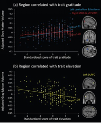 MRI and questionnaires have been used to identify the common and distinct neuroanatomical correlates of the traits of gratitude and elevation (the uplifted feeling that people experience when they see unexpected acts of human goodness.