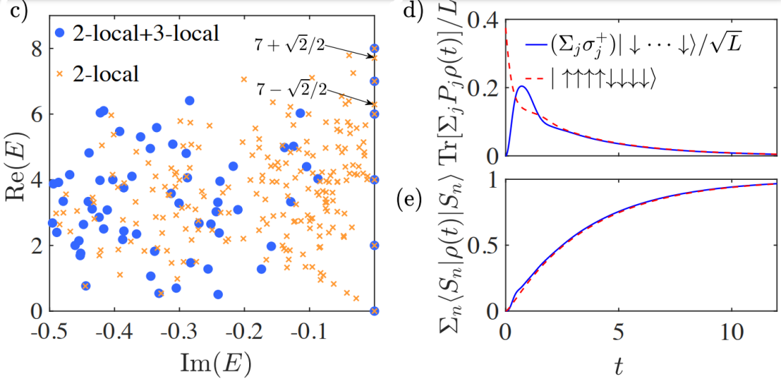 Figure 2:Numerical results for the Liouvillian spectrum and dissipative scarred dynamics