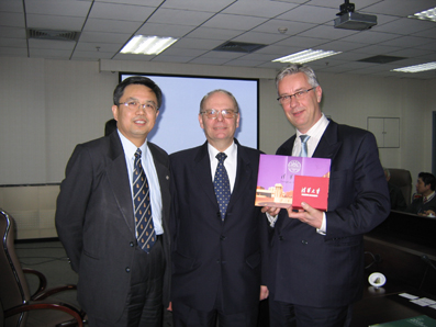 A delegation headed by Dr. Rene Penning de Vries, CTO of Philips Semiconductors, visited the School of Information Science and Technology (SIST) on March 16. Vice President Gong Ke, dean of SIST, met with the group and presided over a discussion among the guests and heads of SIST, the Institute of Microelectronics, the International Affairs Office of Tsinghua and the Digital TV Research Center.