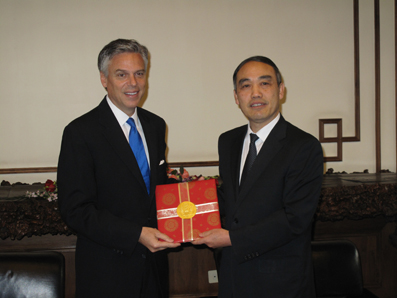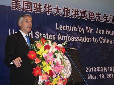 In his speech, Mr. Huntsman emphasized the importance of U.S.-China cooperation to address the challenges facing the world, such as economic recovery and climate change.