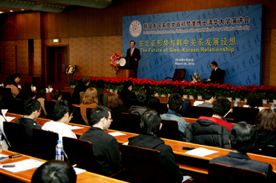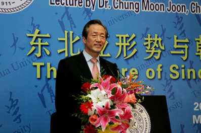 Mr. Chung delivered a speech entitled "The Future of the Sino-Korean Relationship" in Tsinghua's Main Building that morning. He answered questions from students after his speech.