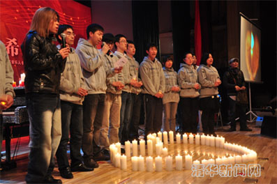 (Students light candles to mourn the Yushu earthquake dead and pray for the affected.)
