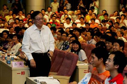 On Thursday, April 8, 2010, the weekly lecture on Mathematics for Computer Science started as usual at 9:50am in the 6th Teaching Building, Tsinghua University. Professor Andrew Chi-Chih Yao presented non-trivial theories to undergraduate students by means of introducing them within the context of their interesting applications in computer science. Drawing connections from Aristotle to Holmes, his examples and vivid introductions were well-received by "Yao Class" students. Following the lecture, Professor Yao joined the ITCS graduate student Theory Lunch during which Ph. D. students, postdoctoral research fellows and faculty members presented their latest research findings, and exchanged research ideas and models. Afterwards, Professor Yao met with a visitor from the MIT Computer Science and Artificial Intelligence Laboratory. By late afternoon, Professor Yao was ready to turn to his own research.