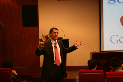 After the talk, Mr. Wilcox and Mr. Descheneaux delivered speeches titled, respectively, "Impacts of the U.S. Subprime Debacle" and "Career Development: Success and Innovation" in the Tsinghua Global Vision Lectures Series.