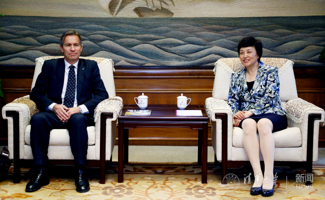 On the morning of July 2nd, Prof. Peter Peter Hoj, Vice-Chancellor and President of the University of Queensland, Australia, visited Tsinghua. Chairperson of Tsinghua University Council Chen Xu met with the guests in Gong Ziting, and exchanged views on further deepening the cooperation between the two universities.