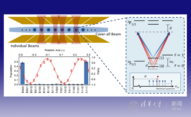 Professor Kihwan Kim’s group in the Center of Quantum Information (CQI), Institute of Interdisciplinary Information (IIIS), Tsinghua University, has recently proposed and successfully demonstrated powerful more than two-qubit quantum gate operations in a trapped ion system. The work “Quantum Simulation of the Quantum Rabi Model in a Trapped Ion” was published on July 24 in Nature. The corresponding authors of the paper are Yao Lu, PhD candidate of IIIS, andProf.Kihwan Kim, associate professor of IIIS. The equally contributed first authors of the work are Yao Lu, Shuaining Zhang and Kuan Zhang, Ph.D. candidates of IIIS.