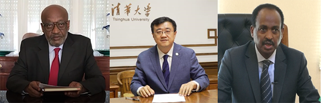 Yang Bin, Professor Engida Getachew, Former UNESCO DDG, and current CALDI Co-President and His Excellency Ambassador Teshome Toga, Ethiopian Ambassador in China, made remarks in the video, underscoring the significance of Sino-Ethiopian academic exchange for fighting the pandemic, and called for the further action to contain the spread of COVID-19 on research collaboration and experience sharing. Ambassador Teshome expressed his appreciation for Tsinghua and CALDI’s efforts and contribution.