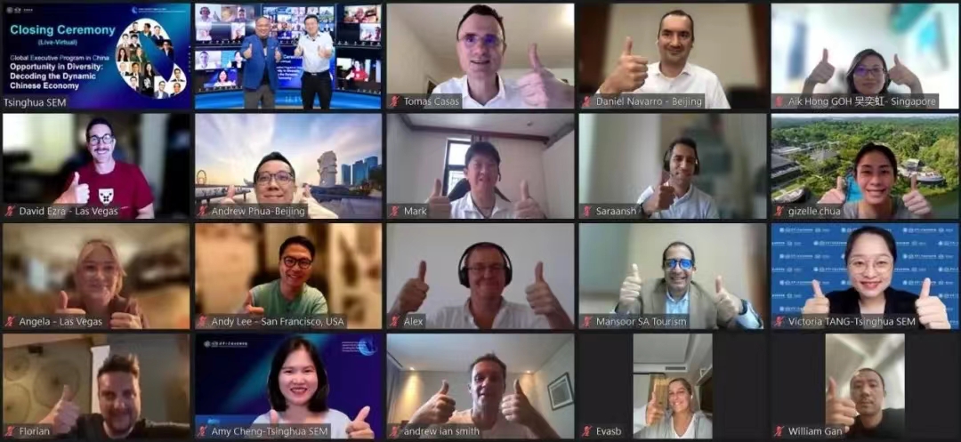 At the end of the closing ceremony, Professor Jizhen Li presented the study certificates to the participants and took a group photo with them. Although the live-virtual sessions came to an end, the learning is never-ending. Next September, participants will gather in China to kick off their in-person modules with three different themes in different cities. Enrollment for the 2023 cohort has also begun, and Tsinghua SEM will welcome participants from the second cohort of GEPC in March 2023.