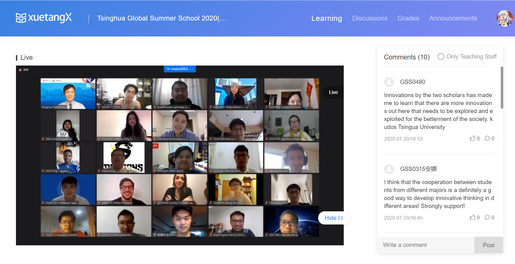 The Tsinghua University online Global Summer School (GSS) 2020, entitled Toward a Post-Pandemic World is a 9-day program organized collaboratively by 17 Tsinghua academic institutions, including ten different schools and departments, five overseas institutions, and two international associations for higher education initiated by Tsinghua.