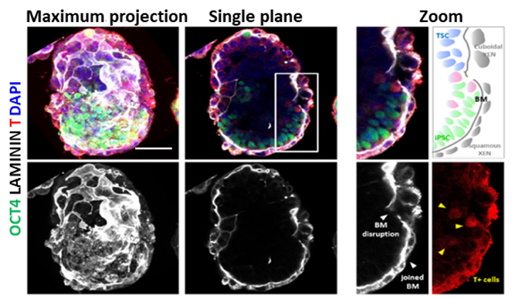 In the study, the researchers first set up a 3D condition to co-culture iPSCs and extraembryonic stem cells to form embryo-like structures, termed ITS, mimicking the early developmental events including pre-amonic cavity formation, basement membrane assembly, symmetry breaking, and mesoderm induction.