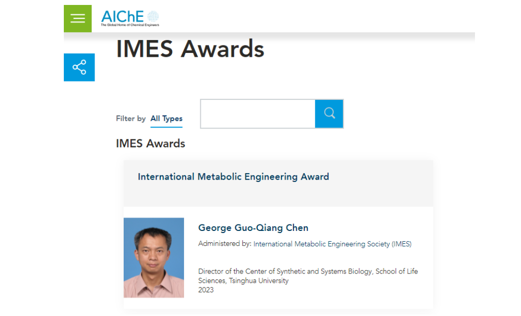 On March 24, the International Metabolic Engineering Society (IMES) granted its 2023 International Metabolic Engineering Award to Chen Guoqiang, director of Tsinghua's Center of Synthetic and Systems Biology. Chen, a professor at the university's School of Life Sciences, is honored for his contributions to the development of Next Generation Industrial Biotechnology (NGIB) based on extremophiles for unsterile and continuous production of biochemicals.