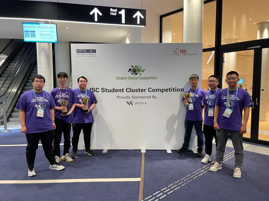 The ISC24 Student Cluster Competition, hosted by the HPC-AI Advisory Council, is one of the three most prestigious international student supercomputing contests, along with the ASC Student Supercomputer Challenge and the SC Student Cluster Competition. This year’s live final featured eight teams from seven countries. The winning Tsinghua team comprised six undergraduates: Runqing Zhang, Jingbo Shan, Xingye Yuan, and Kai Yang from Zhili College, Zhiyu Xue from the Department of Computer Science and Technology, and Jiaqi Pan from the Institute for Interdisciplinary Information Sciences. The instructors are lecturer Wentao Han, professor Jidong Zhai, and postdoctoral fellow Yuyang Jin of the Department of Computer Science and Technology. Ph.D. students Shengqi Chen and Mingshu Zhai from the Institute of High Performance Computing of the Department of Computer Science and Technology provided technical support for the training.