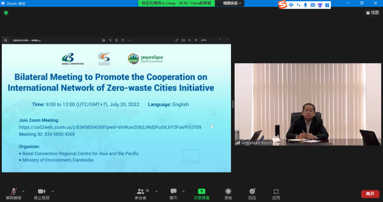 BCRC China and Cambodia’s MoE held Bilateral Meeting to Promote Cooperation on International City Network of Zero-waste Initiative