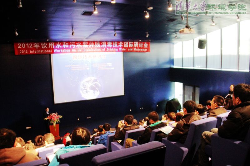2012 International Symposium on UV Disinfection of Drinking Water and Wastewater was held in SOE on December 18th.This symposium was hosted by the International Ultraviolet Association (IUVA), National Technical Committee on Ultraviolet Disinfection of Standardization Administration of China, and the Water Industry Hub for China Civil Engineering Society (WICES). Among those present included Paul Swaim, President of IUVA, Yu Gang, Dean of SOE, and Zhang Yun, Vice Executive Chairman of the board of WICES. They all delivered speeches during the opening ceremony. Professor Liu Wenjun, the Director of the Asia Hub for IUVA and the Secretary-General of WICES, presided over the opening ceremony.