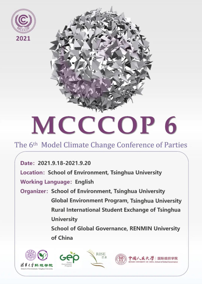 Facing the world and focusing on climate change issues, Tsinghua University Model United Nations Climate Change Conference is the first Model United Nations conference organized by college students from Global Environment Program of School of Environment, Tsinghua University, who are trained by excellent professors to develop solid knowledge base and broad international vision of environmental engineering. Tsinghua University Model United Nations Climate Change Conference provides a professional platform for young people to understand climate change issues, develop climate change-related public awareness, and participate in climate governance and try to make real changes that might affect more people's understanding of climate change affairs.