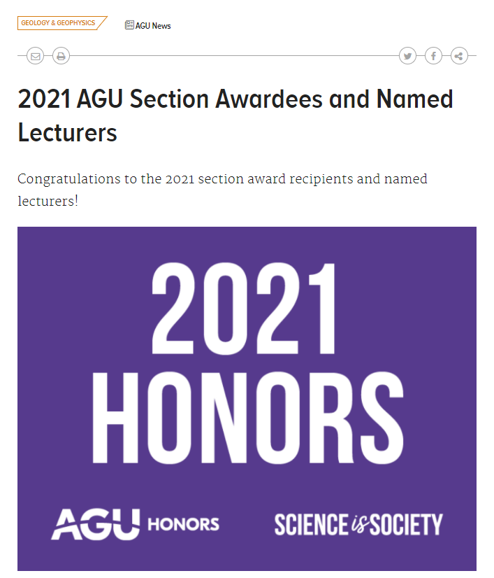 Related Links:https://eos.org/agu-news/2021-agu-section-awardees-and-named-lecturers