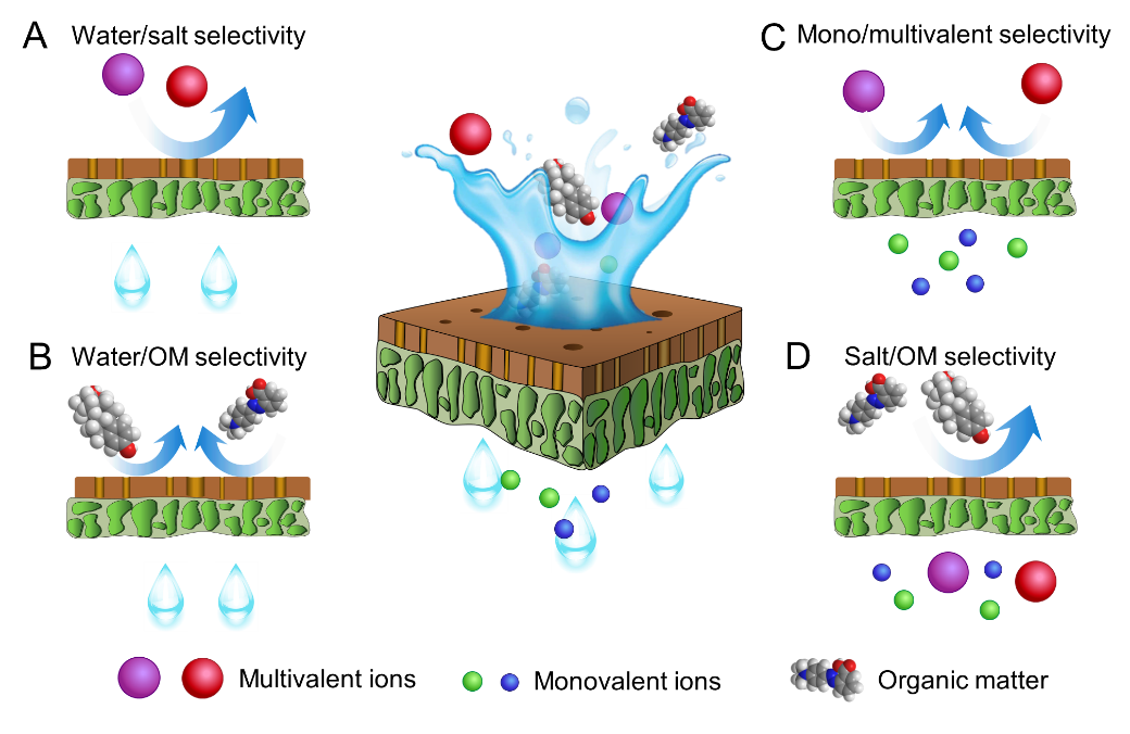 Professor Huang Xia’s team at the School of Environment, Tsinghua University systematically reviewed the recent progress in nanofiltration (NF) membrane fabrication and comprehensively analyzed the synthesis-property-performance relationship with a purpose of directing the tailored design of NF membranes for the increasing and challenging demands in current and future water treatment . They refined the definition for the selectivity of NF membranes, established the tradeoff relationships between permeability and selectivity of NF membranes under different selectivity scenarios for the first time, and furtherly summarized membrane fabrication strategies and revealed the underlying mechanisms to break through the current tradeoff relationships. The research team also strengthened and substantiated the concept of tailored design of NF membranes for different water treatment applications and discussed future research priorities and directions.