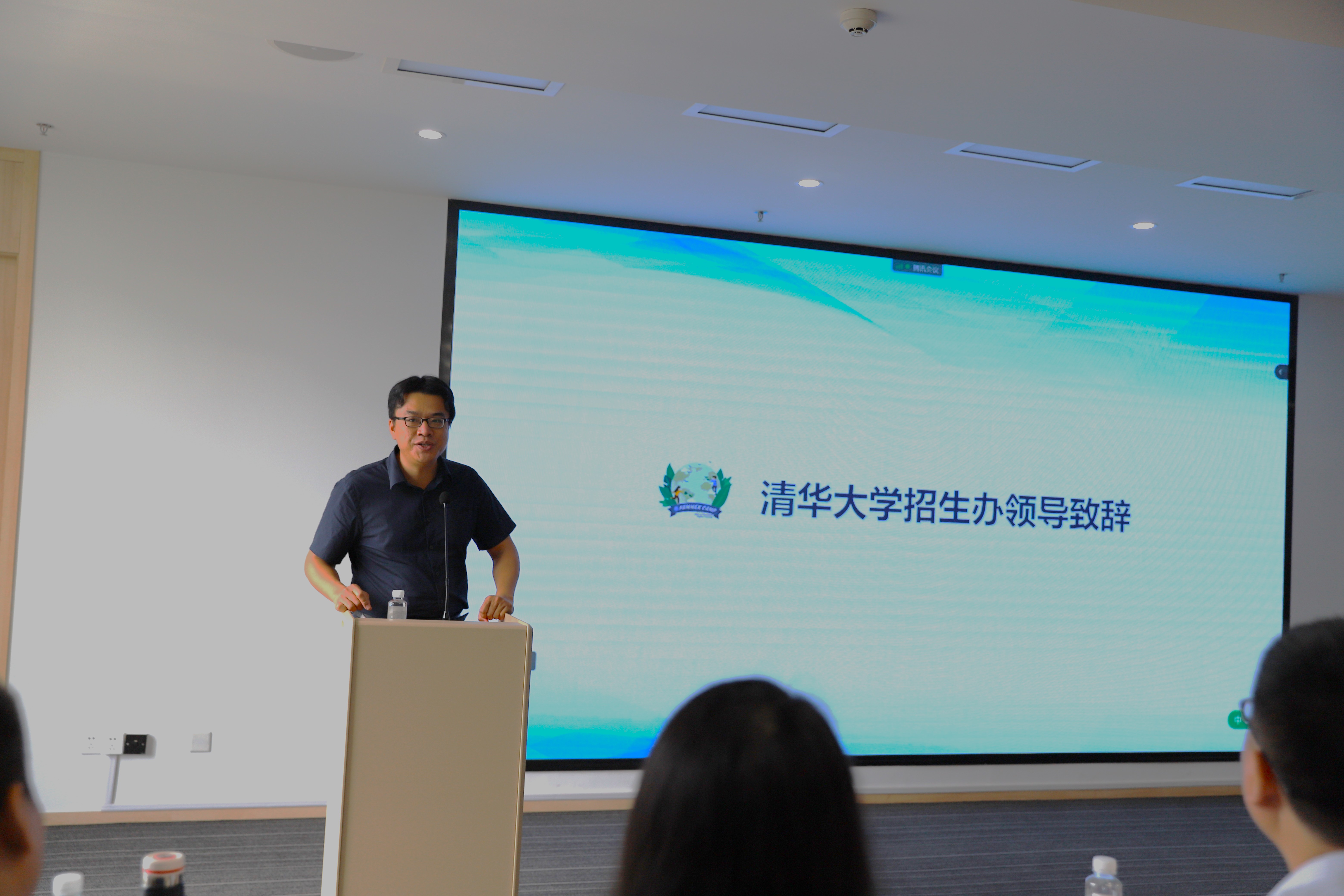 On the morning of August 18, Yue Dongbei introduced the profile of Tsinghua University’s environmental disciplines to the students.