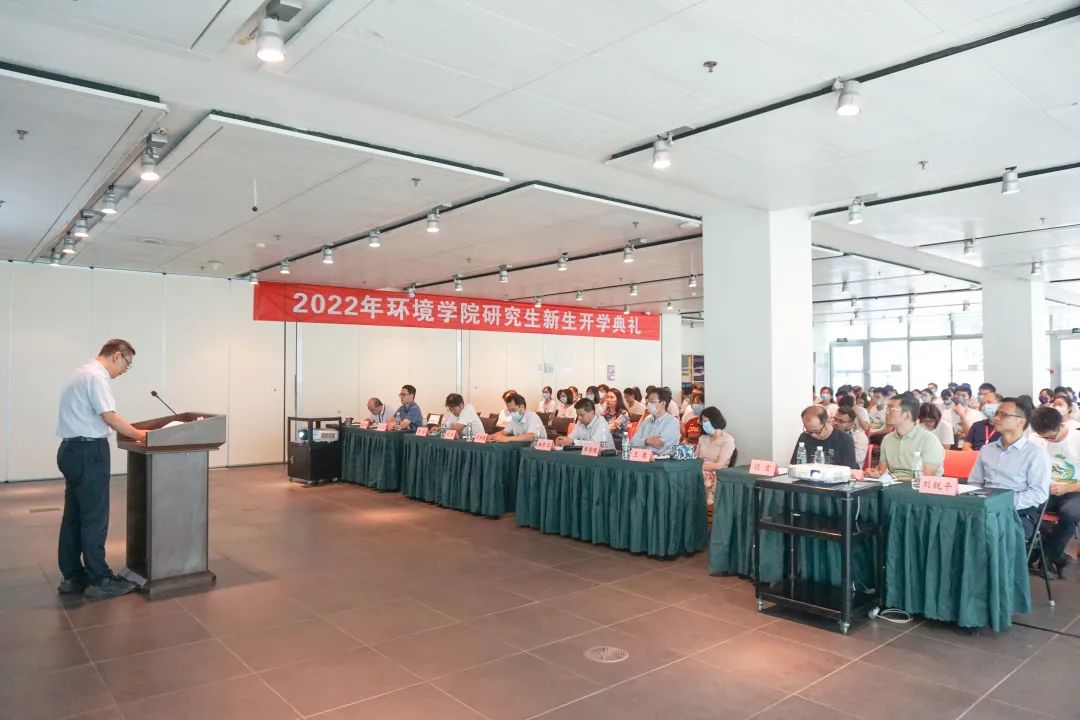On the afternoon of September 1, the Opening ceremony 2022 for new postgraduates of the School of Environment, Tsinghua University was held at the East Hall I of the Sino-Italian Ecological and Energy Efficient Building, available online for those who cannot attend in person. The ceremony was chaired by Vice Dean Yue Dongbei. Over 100 new graduate students attended the ceremony in person, while others participated online. Dean Liu Yi, School Council Chairman Liu Shuming, alumni representative Professor Xing Yi, other school leaders, department representatives, and some administrative staff members attended the ceremony.