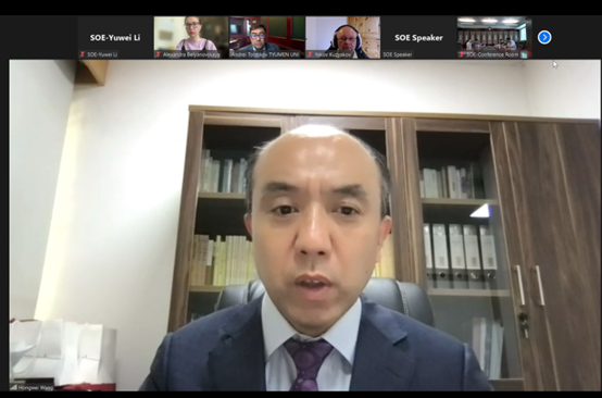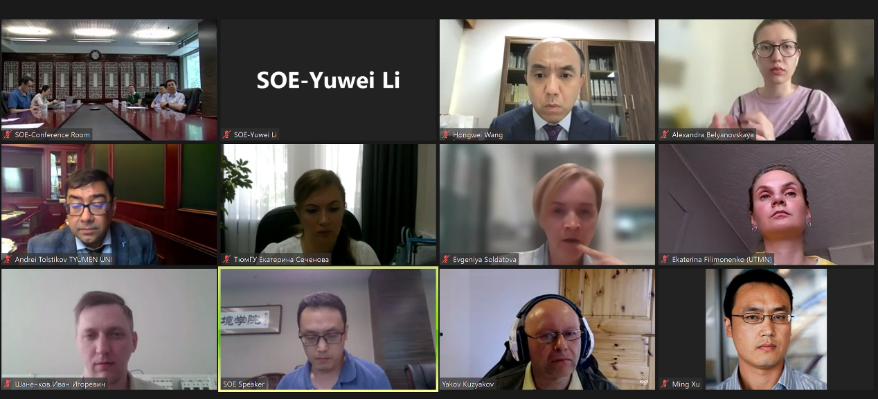 On the afternoon of May 29th, Tsinghua University's School of Environment and Tyumen State University (TMU) held a bilateral meeting on environment and sustainable development in a combination of online and offline methods. The meeting was jointly organized by the School of Environment of Tsinghua University and the Laboratory of Sedimentology and Paleo-evolution of Tyumen State University, with the aim of exploring opportunities for cooperation between the two sides in the field of environment and sustainable development. Tsinghua University Vice President Wang Hongwei, Dean of the School of Environment Liu Yi, Tyumen State University Vice Presidents Tolstikov Andrei and Sechenova Ekaterina, Head of the Laboratory of Sedimentology and Palaeontological Evolution Kuzyakov Yakov, and relevant researchers from both sides attended the meeting. The meeting was chaired by Prof Xu Ming, Director of theDivisionof Environmental Biology, School of Environment, Tsinghua University.