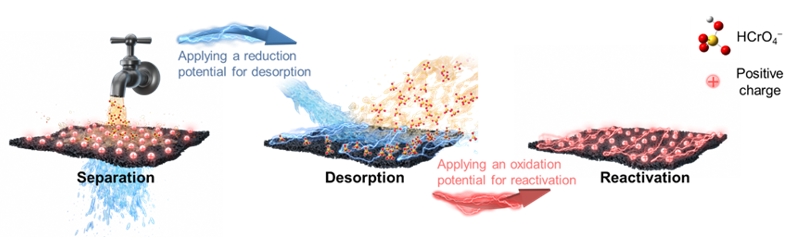 Figure 1. Schematic of rapid separation and in-situ desorption of Cr (VI) by the electrically controlled adsorptive membrane
