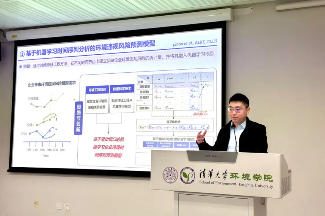 On April 9th, Tsinghua University's School of Environment (SOE) successfully hosted the third "AI for Ecology and Environment" Academic Week in Room 119 as part of the "Four Decades of Environmental Science: Shaping the Future Together" series of academic activities, celebrating the school's 40th anniversary. The event was chaired by Professor Xu Ming, SOE Associate Dean. Professor Qu Shen from the Center for Energy and Environmental Policy Research at Beijing Institute of Technology delivered a special report titled "Industrial Ecology Simulation System Based on Adaptive Agents and Complex Networks (CLUES-ABM)." Over 40 participants attended the event.