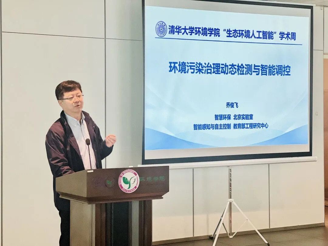 On April 12th, the fourth "AI for Ecology and Environment" Academic Week Seminar was successfully held in East Hall 1 of the School of Environment (SOE), Tsinghua University as part of the "Four Decades of Environmental Science: Shaping the Future Together" series of academic activities. A special lecture titled "Dynamic Monitoring and Intelligent Regulation in Environmental Pollution Control" was delivered by Professor Qiao Junfei, Vice President of Beijing University of Technology. The event was chaired by Professor Xu Ming, SOE Associate Dean. Over a hundred faculty members and students participated in the event.