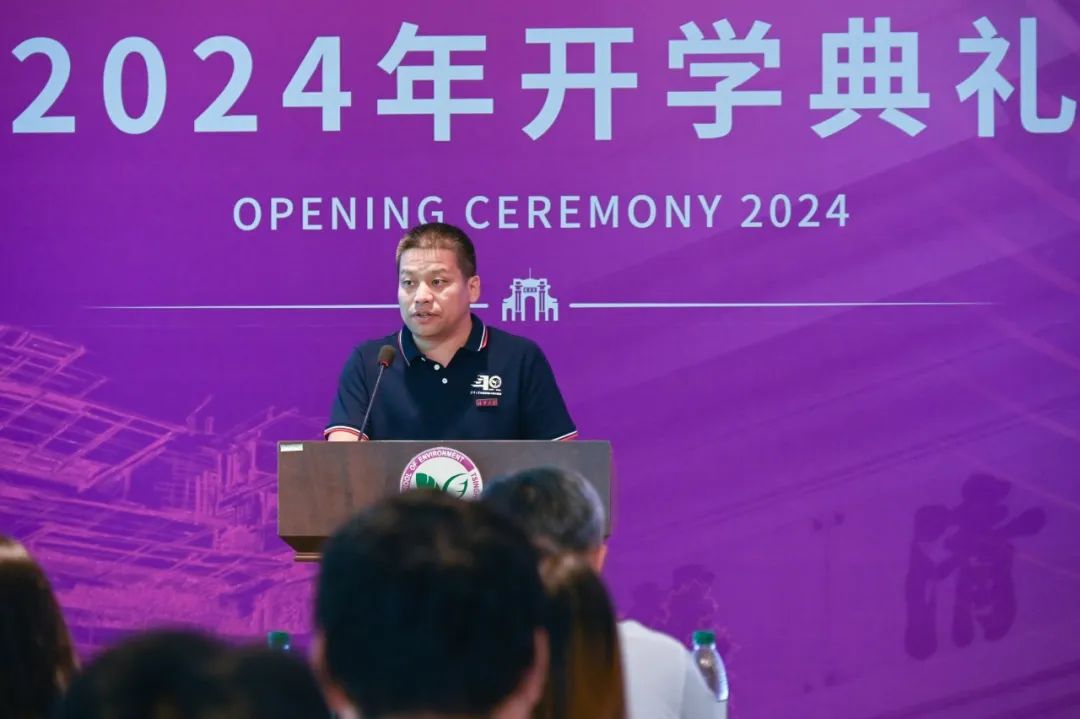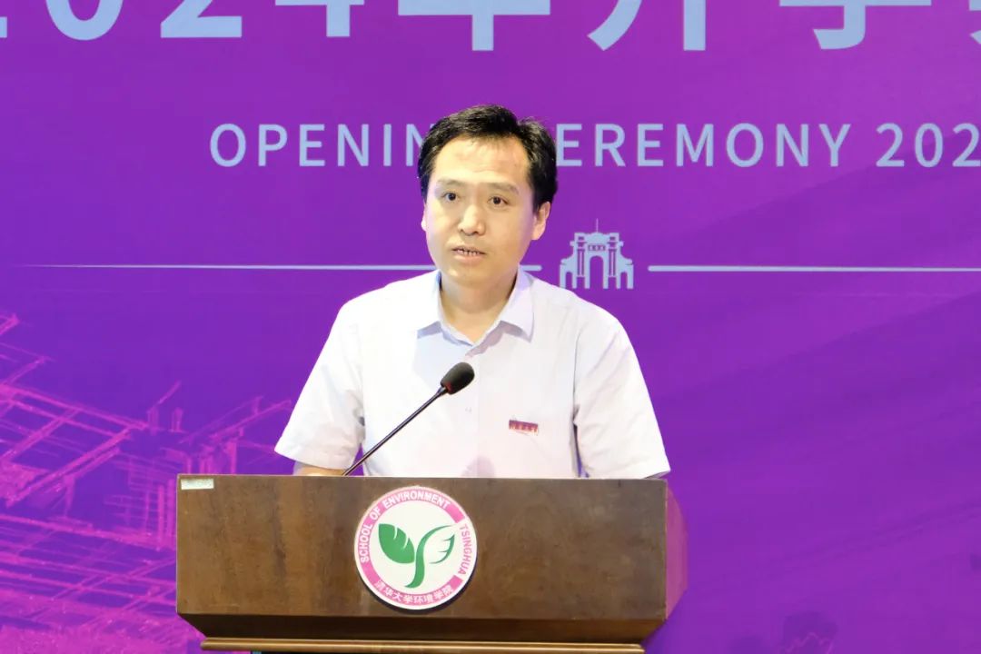 Hu Hongying delivered a speech as the faculty representative. He congratulated the students on starting a new chapter in their lives and shared his personal experiences and reflections on the development of the environmental field. He emphasized that environmental professionals should adopt an "environmental" mindset: they need to have an objective and in-depth understanding of the characteristics of the "environment" itself, taking into account its complex system features in their research. They should also have a comprehensive and systematic understanding of the "environmental cause", focusing on identifying problems, promoting policies, and developing standards. Additionally, they must have a correct and dialectical understanding of the "environmental discipline", foster practical perspectives and engineering thinking, and continuously seek research questions with "environmental value" from practical experience. Finally, he encouraged the students to enjoy their time on campus, infuse new vitality into the environmental discipline, and devote their youthful energy to achieving modernization with harmony between humanity and nature.