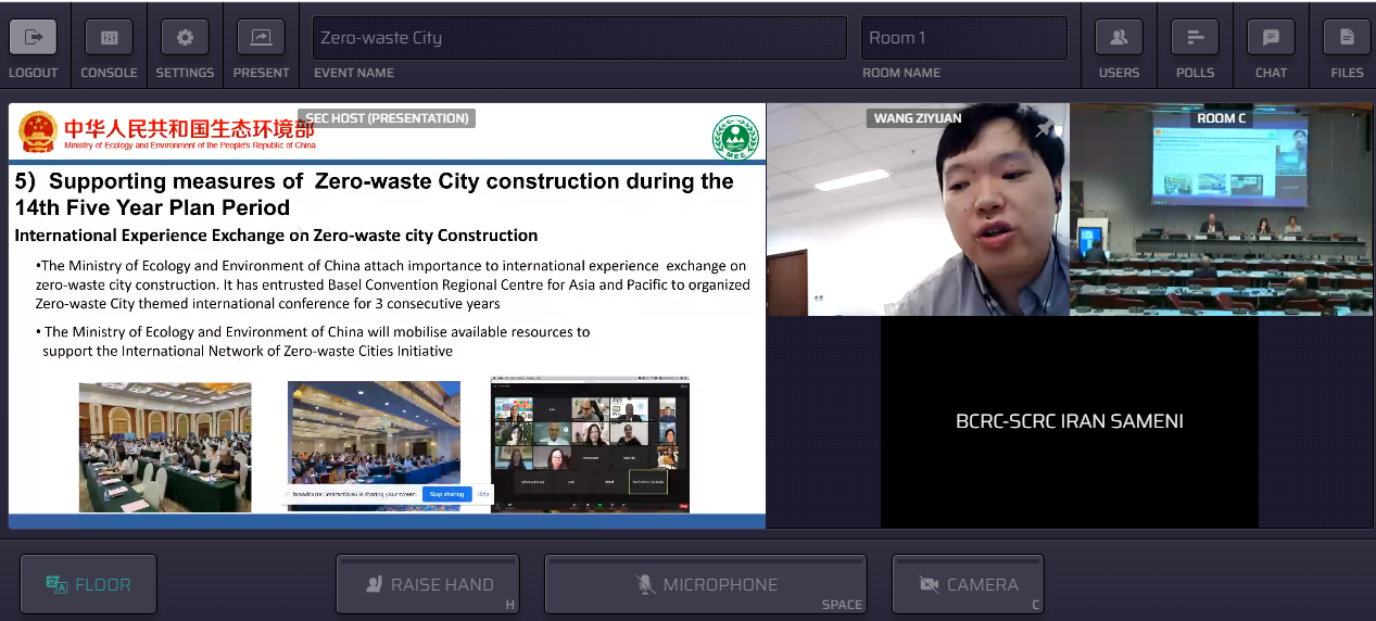 In the reporting session, firstly, Mr. Wang Ziyuan, Officer of Solid Waste Division, Department of Solid Waste and Chemicals, Ministry of Ecology and Environment, China, introduced Zero-waste City in three aspects: the working process of the pilot construction of China's Zero-waste City, the remarkable results achieved in the pilot construction of the Zero-waste City, the promotion plan for the construction of Zero-waste City during the “14th Five-Year Plan” period. Then, Ms. Clare Chow, Senior Assistant Director, Environmental Policy Division, Ministry of Sustainability and the Environment,Singapore, introduced Singapore’s Zero-waste Master Plan and Singapore’s circular economy management measures for three priority waste streams: food waste, packaging waste, and e-waste. Thirdly, Ms. Shan Guijuan, Deputy Chief of Environmental Technology Branch of Basel Convention Regional Centre for Asia and the Pacific, and Mr. Craig Boljkovac, Senior Advisor, jointly introduced the organizational progress of the International Network of Zero-waste Cities Initiative. Finally, Mr.Mehdi Sameni, Director of Basel Convention and Stockholm Convention Regional Centre for Training and Technology Transfer in Iran, introduced Iran's nationwide zero-waste initiative, and said that the Basel Convention and Stockholm Convention Regional Center for Iran will work with the Basel Convention Regional Center for Asia and the Pacific to build a zero-waste Kish Island.
