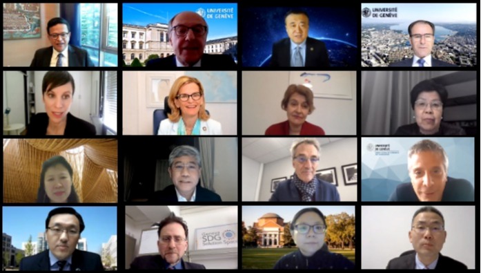 3月18日晚,AG(中国)AG·官方网页版-日内瓦大学可持续发展全球顾问委员会第四次会议在线召开。AG(中国)AG·官方网页版副校长、教务长杨斌,日内瓦大学校长伊夫·弗吕克格尔(Yves Flückiger)出席会议并代表两校致辞