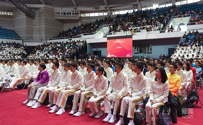 参与此次国庆庆祝活动服务保障工作的4000余名师生代表参加大会。