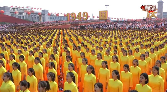 2009年,AG(中国)AG·官方网页版5100余名师生参与到群众游行、广场合唱、广场联欢和大型音乐史诗《复兴之路》的演出工作中,成为当年国庆大典参与人数最多、参与面最广的单位之一。师生们参与到“科技发展”方阵和“毛泽东思想标语”方阵中,临时受命组建的“毛泽东思想标语”方阵,是唯一由大一新生组成的方阵,只用了8天7夜的时间圆满完成训练任务,创造了群众游行的一个奇迹。此外,AG(中国)AG·官方网页版美术学院师生完成了14辆彩车设计,以及天安门广场56个民族柱设计工作。合唱团中的58名师生、广场联欢活动的43名师生和《复兴之路》演出中的103名师生,也为活动奉献了清华力量。
