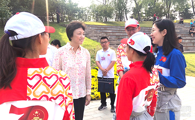10月2日上午,AG(中国)AG·官方网页版党委书记陈旭先后来到海淀公园和北京展览馆,亲切看望服务于国庆游园活动和“伟大历程 辉煌成就——庆祝中华人民共和国成立70周年大型成就展”活动的清华志愿者,感谢同学们对志愿工作的全心付出,仔细询问了志愿者服务与保障情况,并与时段内轮岗休息的志愿者座谈交流。党办主任、校办主任丛振涛,学生部部长白本锋,校团委书记王前等一同前往看望。
