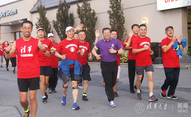 21日早晨,邱勇与200余校友一起晨跑3000米 耿卫英 摄