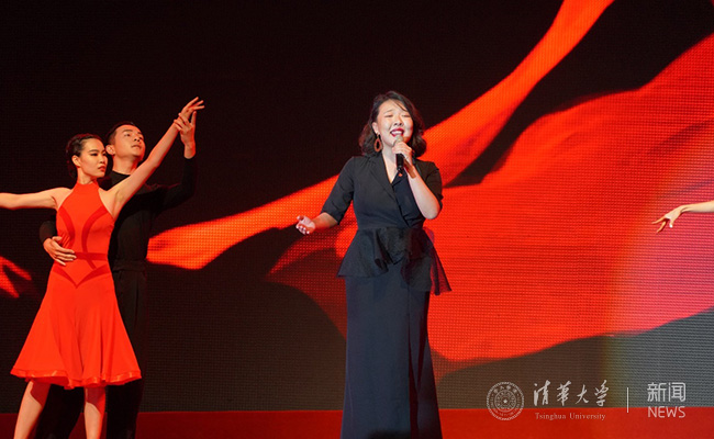 接下来,来自港澳地区的学生上台演唱了《东方之珠》与《七子之歌》,国际学生演唱了经典曲目《茉莉花》。在这深情的旋律里,台下同学一齐挥舞手中的五星红旗。此时,一直藏在云层后的圆月跃然而出,观众席的同学们抬头望月,不禁感慨万千。来自学生艺术团舞蹈队的一支《骤雨新荷》更是将晚会的氛围推向了高潮。