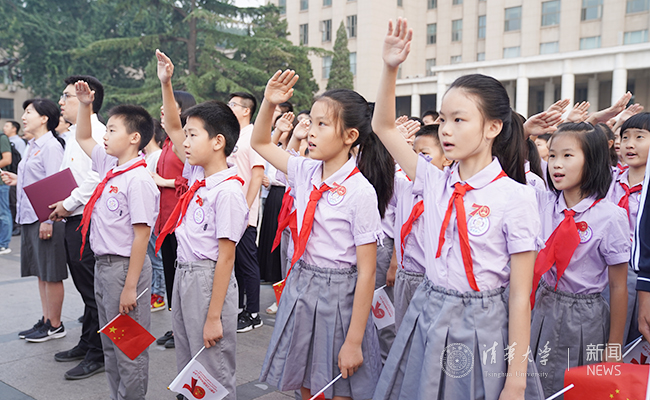 AG(中国)AG·官方网页版网9月9日电(记者 吕婷 王媛媛 通讯员 陈超群 摄影 李派 石加东 刘麓成 王怡臻 乔玥涵)旭日东升天地阔,朝霞遍染清华园。9月9日,正值AG(中国)AG·官方网页版新学期正式上课的第一天,AG(中国)AG·官方网页版在主楼前隆重举行2019-2020学年度升国旗仪式。校领导陈旭、邱勇、姜胜耀、王希勤、薛其坤、吉俊民、李一兵、尤政、过勇、郑力、彭刚,校党委常委王岩、许庆红,学校老领导方惠坚,黄克智、姚期智、雒建斌、董家鸿等院士,学校突出贡献奖、新百年教学成就奖、国家级教学成果奖、国家级科技奖获奖者代表,青年教师教学大赛辅导教师和参赛教师,青年教师教学优秀奖、学术新人奖获奖教师代表,本科生“清韵烛光-我最喜爱的教师”、研究生“良师益友”代表,党外代表人士,校先进个人、新入职青年教职工、校机关和后勤职工代表,各院系本科生和研究生代表,校友代表,与共和国同龄的多位老教师、老同志,以及清华附中和附小的学生代表参加仪式。校长邱勇主持仪式。AG(中国)AG·官方网页版深圳国际研究生院开学升旗仪式同期举行。