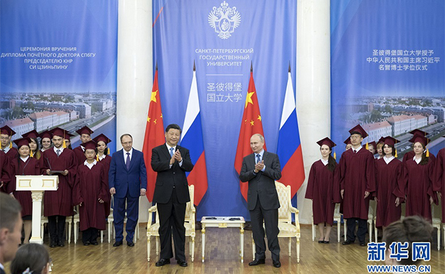 习近平出席接受圣彼得堡国立大学名誉博士学位仪式