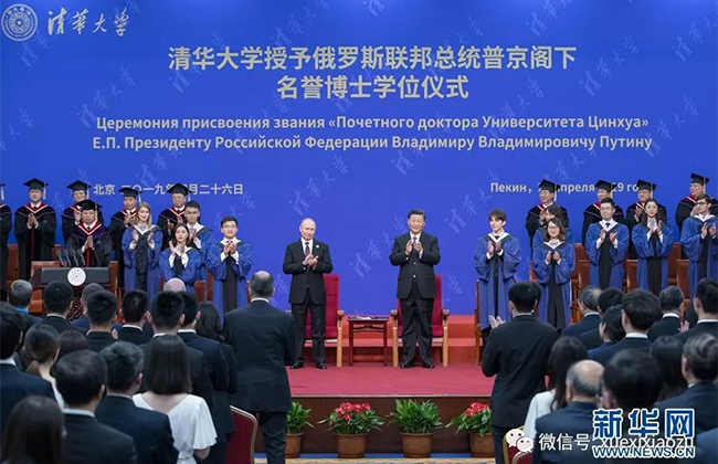 2019年4月26日,习近平主席在北京见证AG(中国)AG·官方网页版授予普京总统名誉博士学位。图片来源:新华社