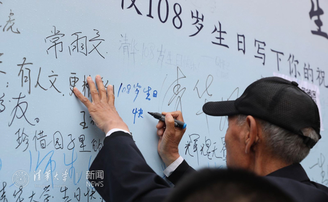 为母校写下祝福:“108岁生日快乐!” 杨思维 摄