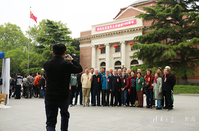 老照片,老物件,珍藏的时光乍现,激动的心情涌动。新清华学堂广场上,印满黑白老照片的展板成为一道靓丽的风景线。1984级每位同学当年的入学照清晰可见,毕业30周年的1984级校友纷纷上前仔细辨认,激动地喊出一位位老同学的名字。1984级机械系校友闻星火说:“看到老照片仿佛回到了过去。我们班29人今天回来24人,真的是大团圆!” 1984级环境学院校友周丹带上妻子和孩子一起来为母校庆生,“希望小孩来接受一下熏陶,以后也争取考清华!”周丹笑着说。