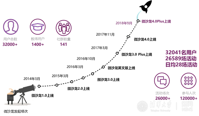 线上牵线搭桥,线下深入交流,如此简单易行的操作,得益于对信息化技术的灵活运用以及对“O2O”(Online To Offline,线上到线下)理念的成功探索。自2014年5月“微沙龙”平台上线以来,系统已升级迭代4次,先后实现双语化、小程序化等功能,增设社群管理、读书交流等模块,还依托教师“开放交流时间”(Open Office Hour),邀请教师在微沙龙平台发起开放交流。2018年全年共有106名教师利用“微沙龙”平台开展470场开放办公主题交流活动。截止2019年1月,平台已注册师生超32000名,其中教师超1400人,累计发起学术交流超过26000场、覆盖12万人次,其中跨学科学术交流的比例超过60%,成为在校学生的重要学术交流平台。