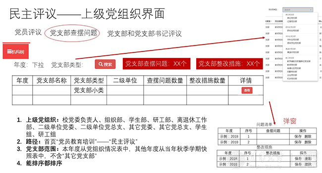 系统不断的更新迭代,在为基层党组织党员提供更优质服务的同时,也促进了管理流程的优化。举例来说,2018年有16项党务工作所需的数据(如教职工党支部书记补贴发放、党组织换届情况排查等)由组织部直接从系统中获取,不再需要各单位层层报送,为基层党务工作者“减负”。同时,包括校领导在内的各级管理者,可以通过系统直接掌握全校每一个支部和每一名党员的实时数据,规避了层层报送过程中的数据滞后和数据偏差,帮助管理者更好把握情况、发现问题、精细指导、科学决策,可以说是“一竿子插到底掌握情况”。