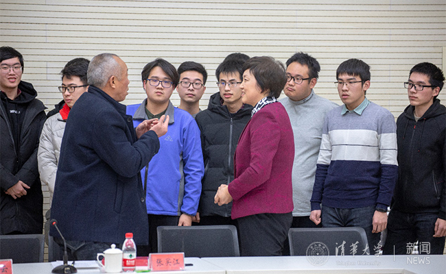 师生与红旗渠精神、扁担精神代表人物张买江、李改云、尹梅花座谈 程正雨 摄