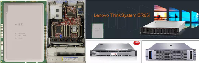 津逮高性能CPU芯片和联想SR651、长城JW920、新华三R4900商用服务器整机
