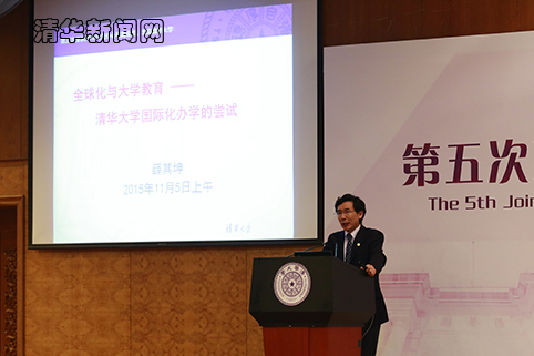 薛其坤在大会上作“全球化和大学教育”主题发言。记者 苑 洁 摄
